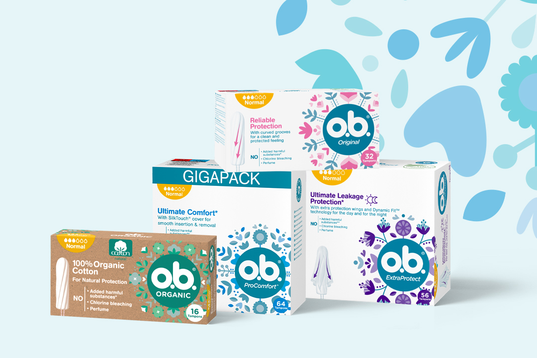 40 zemí světa. Pro miliony žen a dívek jsou tampony nedílnou součástí jejich života. Vy důvěřujete kvalitě značky o.b.® a my usilovně pracujeme na tom, abychom si tuto důvěru udrželi. Více informací o výrobě a složkách použitých v našich tamponech najdeš v sekci Složení.